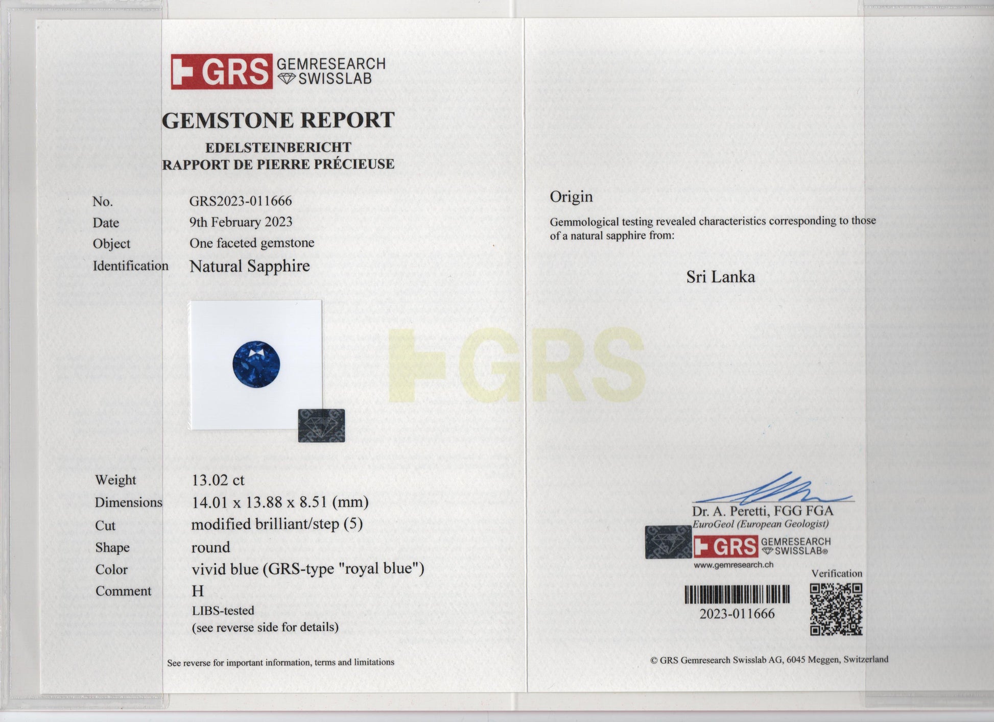 13.02 cts SPARKLING 100% Natural Vivid Royal Blue Color heated Ceylon Sapphire
