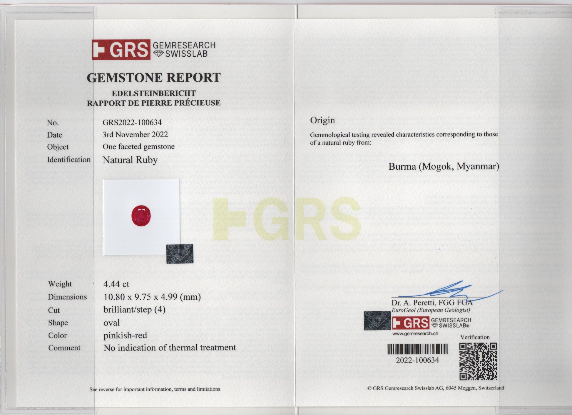 Weight (carat) : 4.44 cts